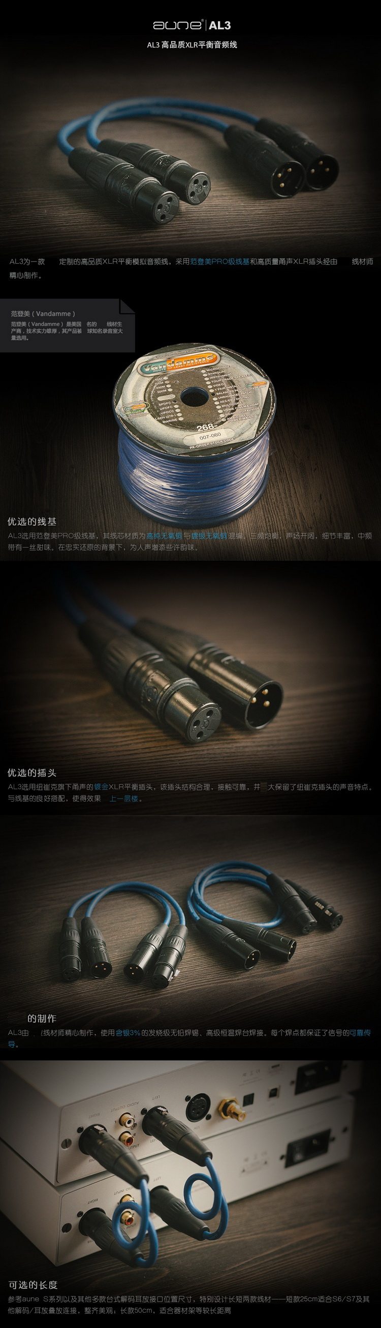 - aune AL3高品质XLR平衡音频线