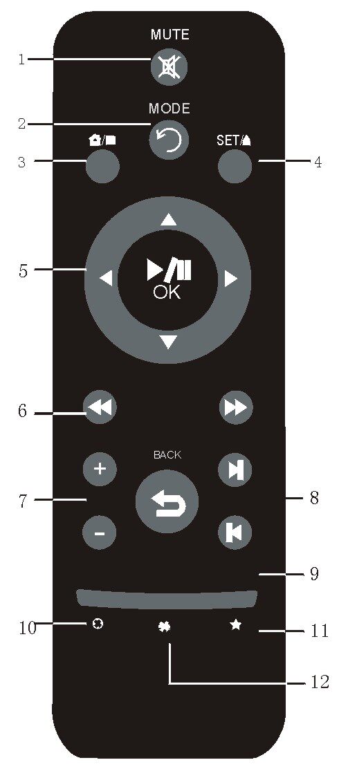 5.功能操作按键:向上/上一曲;向下/下一曲;向左/返回;向